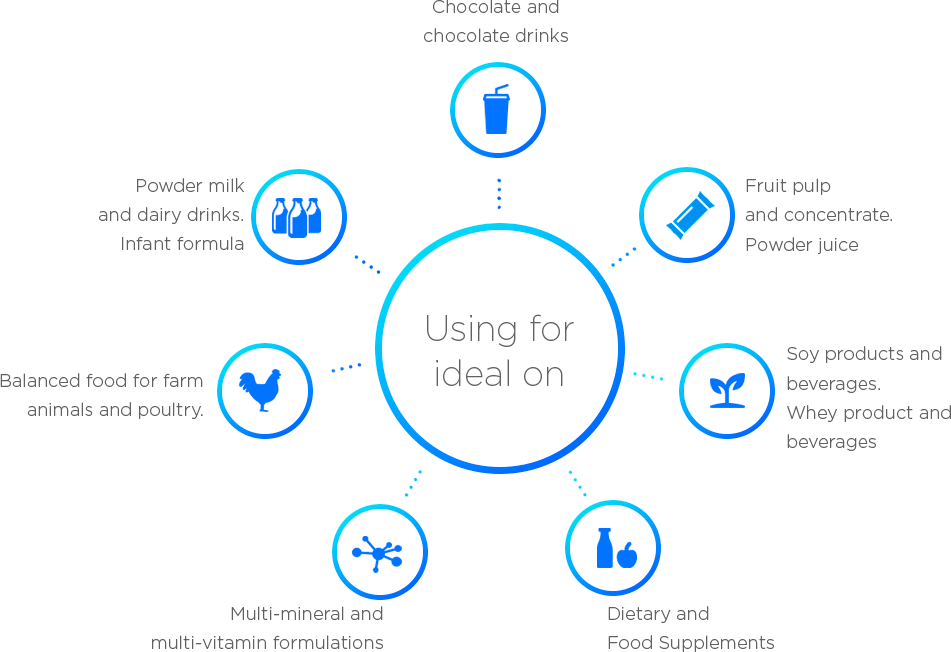 Nuestras sales minerales no solo otorgan valor agregado a los productos de nuestros clientes al proveerles propiedades nutricionales especificas, sino que también permiten hacer un enfoque en necesidades nutricionales especiales logrando un mejor posicionamiento en el mercado.