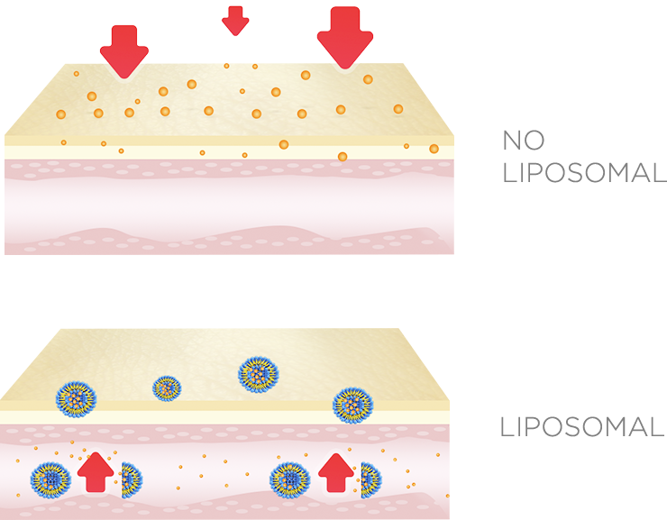 Contrario a las cremas no liposomales, que actúan sobre la epidermis, las cremas liposomales actúan desde el interior de la epidermis, liberando el principio activo desde adentro hacia afuera.